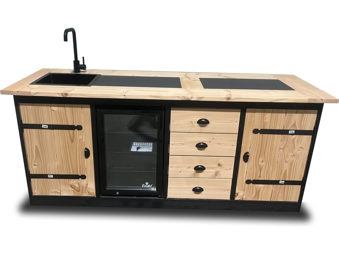 Met een handige Koald 70-liter koelkast (instelbaar van 0-10 graden) houd je dranken en ingrediënten altijd op de perfecte temperatuur. Daarnaast beschikt deze buitenkeuken over een moderne Lomazoo wasbak en kraan, zodat je gemakkelijk kunt spoelen tijdens het koken.