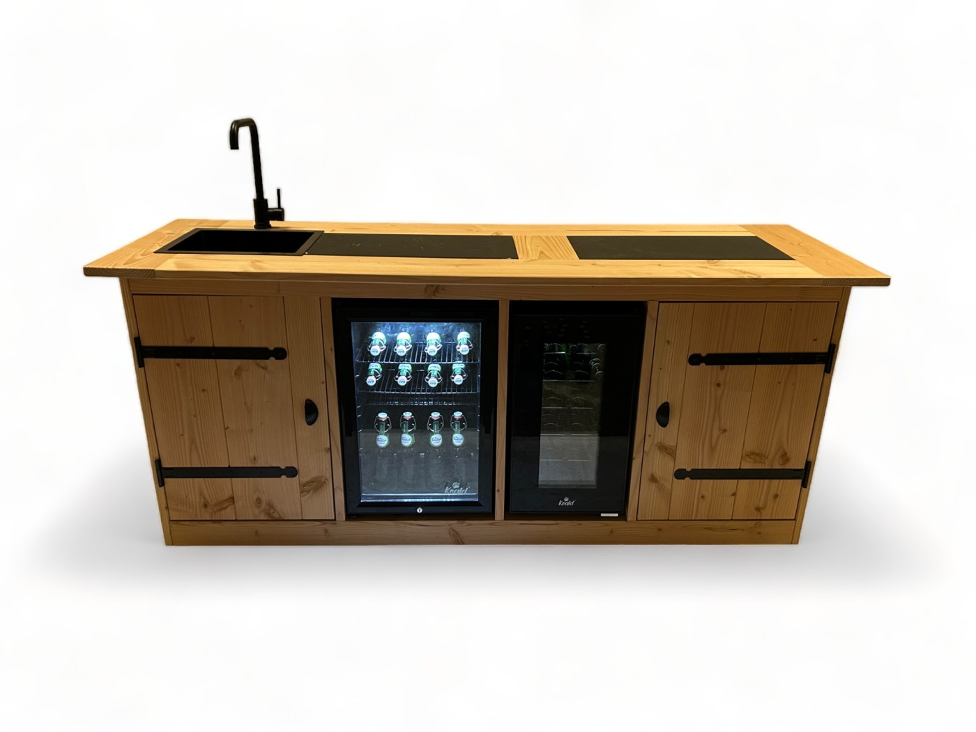 De Nebraska wordt geleverd met alles wat je nodig hebt om een complete culinaire ervaring te creëren. Denk aan twee Koald 70-liter koelkasten (instelbaar van 0-10 graden), perfect om je ingrediënten en drankjes koel te houden. De geïntegreerde Lomazoo-wasbak en kraan voegen extra gemak toe, zodat je direct aan de slag kunt met bereiden, afwassen of schoonmaken.