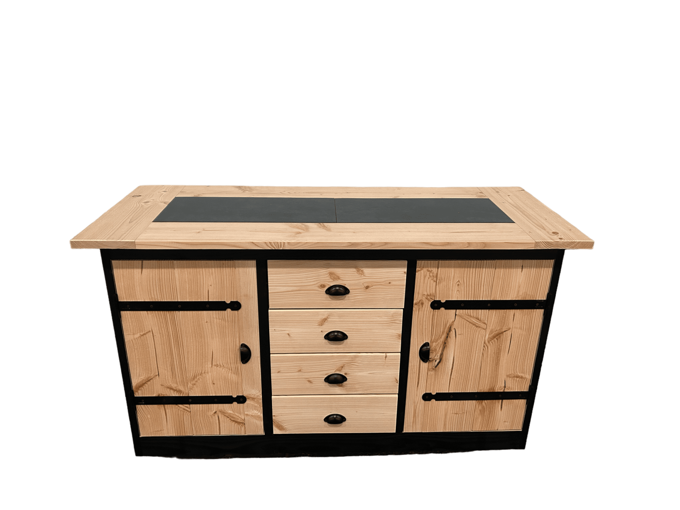 - Paneel 2: Vier stevige lades voor kookgerei en andere benodigdheden.